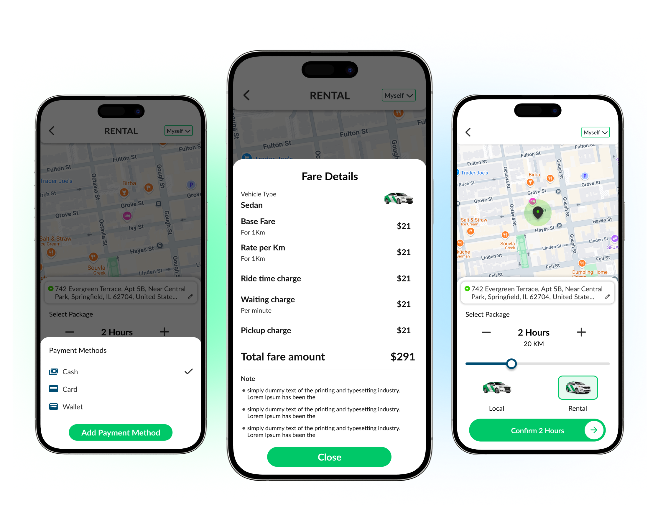 Riders can conveniently pay for their ride using various options: cash, card, or wallet payments.