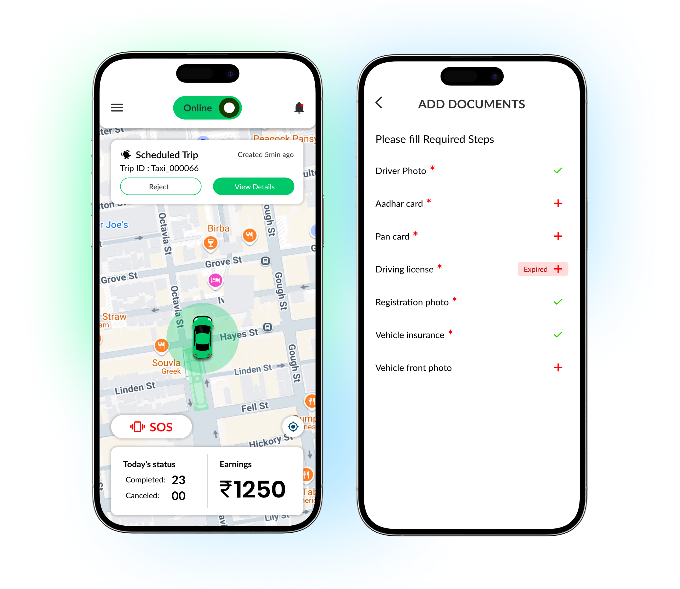 Drivers must upload essential documents before starting. Admin will verify and approve it.