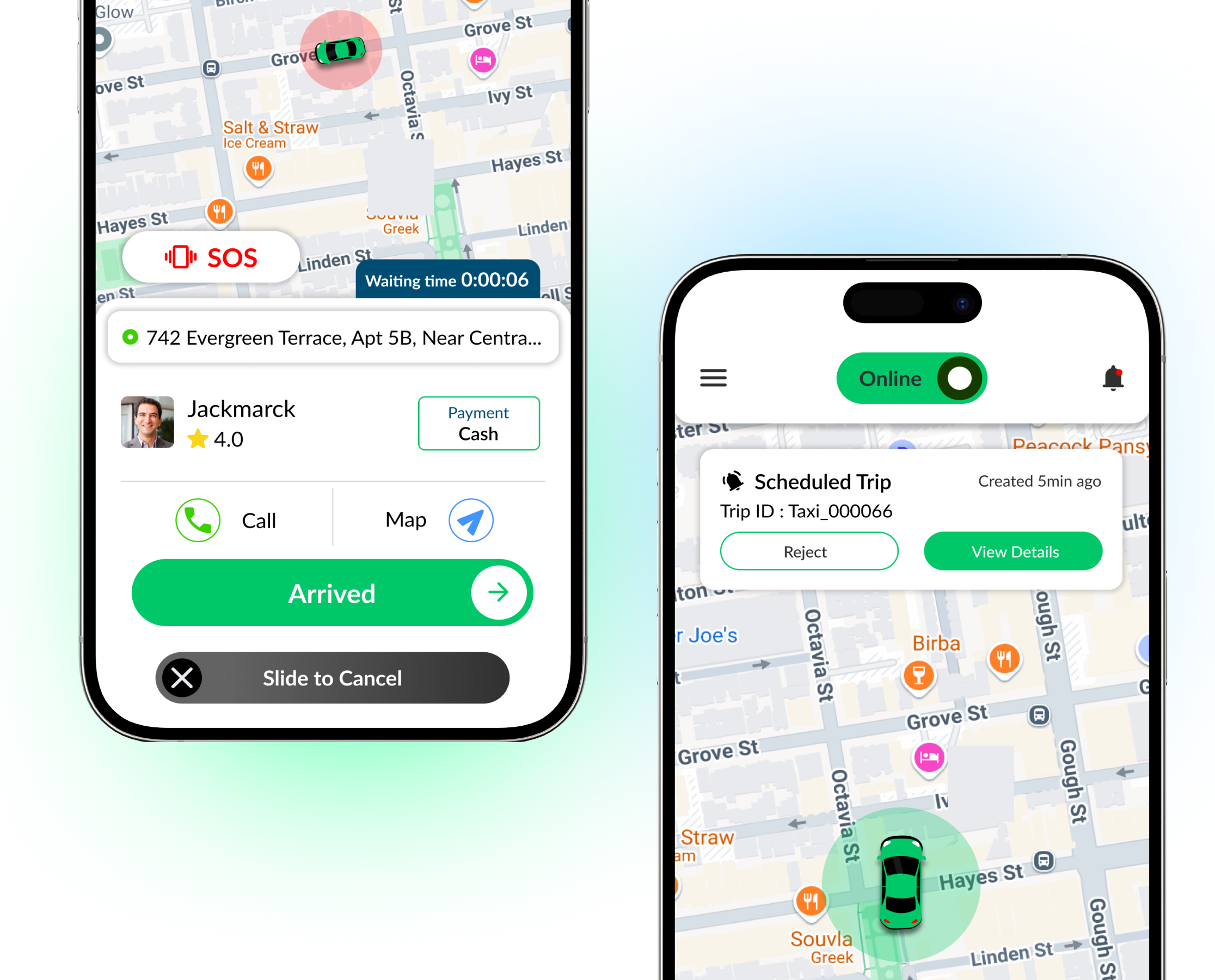Drivers can choose to be online or offline. Trip requests come only when drivers are online.